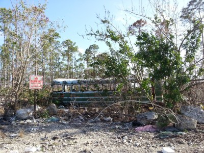 In mancanza di auto da noleggiare, prendo uno scooter. Il tipo che lavora al noleggio è aggressivo e grosso. In teoria, parla Inglese come chiunque altro qui, in pratica dice solo “no”. “Cosa copre l’assicurazione?” “No” “Quando parla di noleggio giornaliero, intende ogni 24 ore o c’è un orario limite prestabilito?” “No” Mi consegna le chiavi e salgo sullo scooter, di una marca che sono certo non sia conosciuta nemmeno nel Djibouti. Mi strattona per farmi scendere dalla sella. Mi spiega come mettere in moto. Mi ha fatto spegnere lo scooter, per potermi spiegare come metterlo in moto. “Non penso sia particolarmente difficile”, gli dico. “No”, dice lui. “E’ necessario riportare lo scooter con il pieno?” Sì. È l’unica risposta affermativa che ricevo. “Se penso che non ci sia il pieno, paghi il doppio”, mi dice il tipo. È quel –se penso- che mi preoccupa. Lui sorride. Anche senza farci particolarmente caso, si nota subito che gli mancano un canino e un molare sull’arcata superiore. Sembra un pugile trasformato in imprenditore. Mi strattona di nuovo per farmi salire nuovamente sullo scooter. Freeport, inland. L’entroterra di Freeport. Qui, il lungomare è già un ricordo. È un quadro di decadenza e teatralità. Ogni elemento sembra poggiato lì secondo copione. Strade lunghe e larghe e infinite, ma vuote. Andando verso ovest da Lucaya Beach, c’è un checkpoint militare abbandonato. I chilometri scorrono e la benzina va giù come se il serbatoio fosse bucato. E può darsi che lo sia in effetti. Non ci sono distributori in vista, e il panorama rimane uguale a se stesso. La lingua centrale di asfalto è accompagnata, a sinistra e a destra, da sterpaglia. Un groviglio di erba secca e bruciata, con pochi alberi. Tra gli arbusti c’è anche un autobus abbandonato e arrugginito.