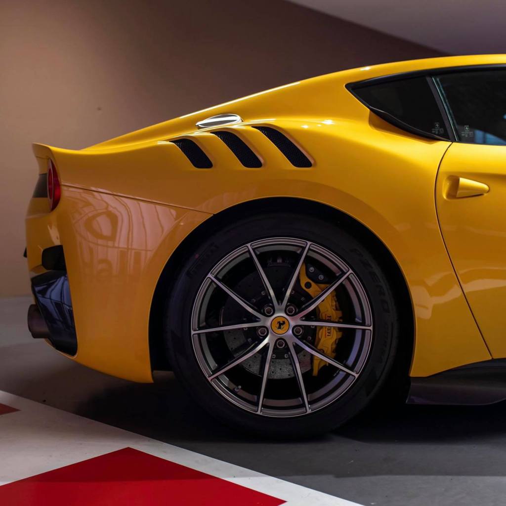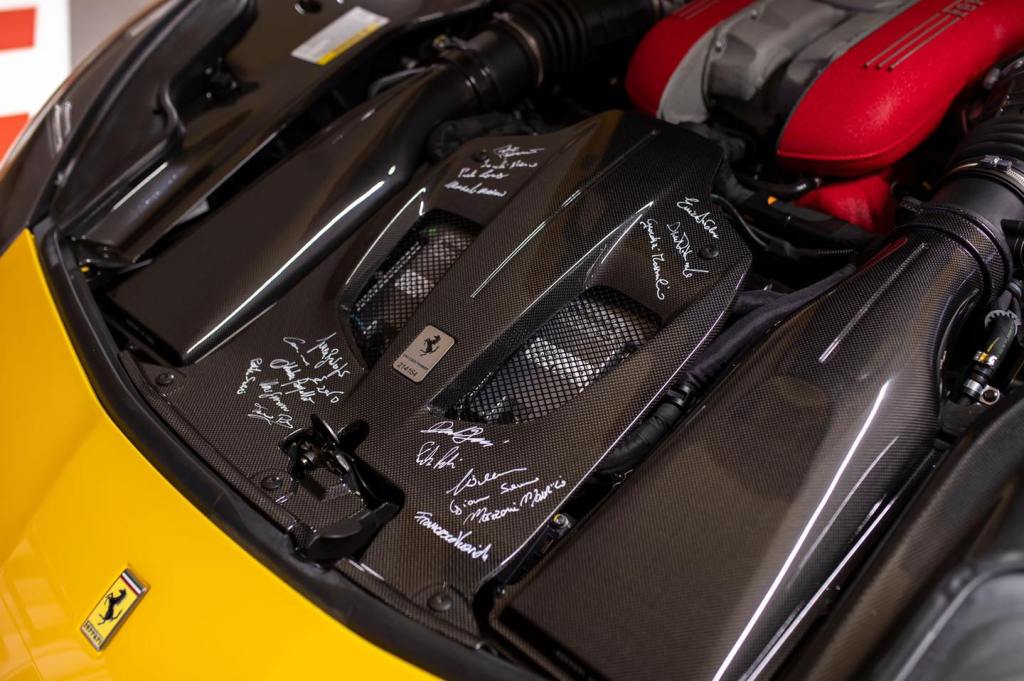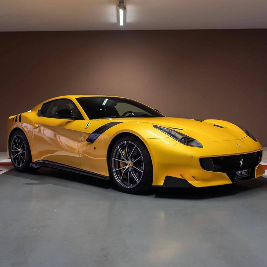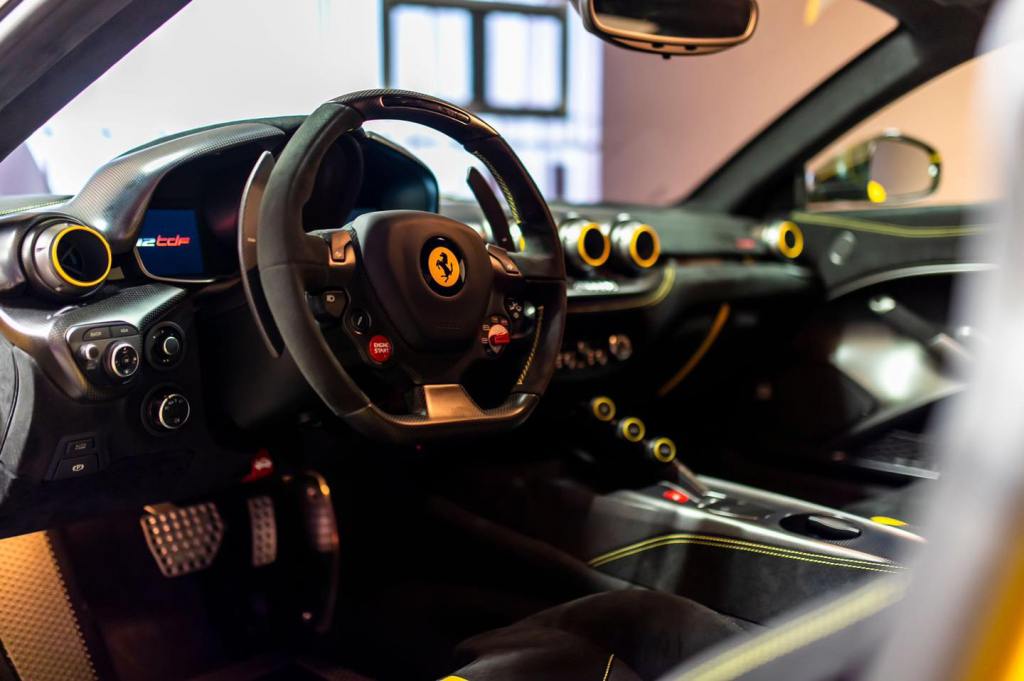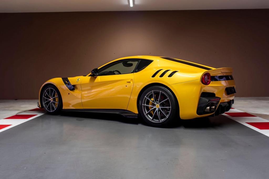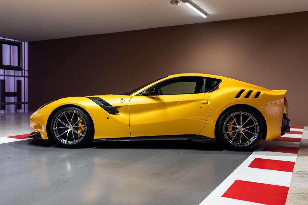 Oltre agli interni in Alcantara, con inserti a contrasto in giallo, elementi in carbonio e sedili con poggiatesta personalizzato, la F12 si presenta con alcune selezioni uniche come la tinta Giallo Triplo Strato e com’è facile immaginare è praticamente nuova, con appena 1.169 percorsi.