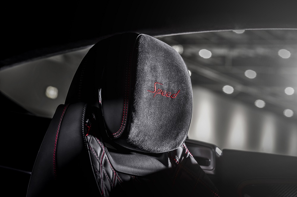 Esteticamente, Speed si riconosce per i cerchi dedicati da 22 pollici, paraurti più aggressivi e interni anch’essi creati ad hoc per Speed, con rivestimenti in pelle e Alcantara, con possibilità di scelta fra 15 colori e 11 ulteriori combinazioni, a cui si somma la console centrale in ‘Dark Tint Engine Turned Aluminium’.