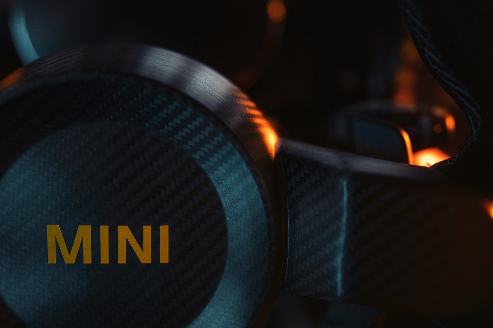 Nella parte anteriore si notano i tratti distintivi del brand come i fari circolari e la griglia esagonale del radiatore oltre ad alcuni dettagli familiari per JCW, come passaruota e splitter maggiorati. I cerchi (forgiati) sono da 18 pollici bicolore nero-neon/arancio. Alcuni componenti, come ad esempio gli spoiler, sono stampati in 3D (a Oxford) utilizzando fibra di carbonio riciclata.