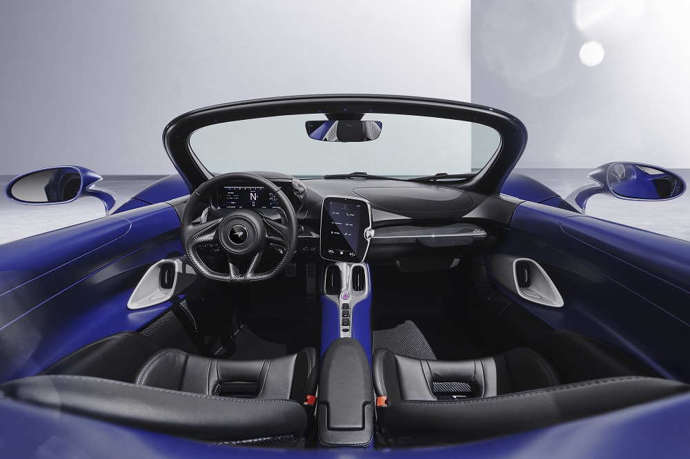 Per celebrare l’occasione, McLaren aggiunge il colore Satin Blue con livrea MSO ispirata alle livree utilizzate da Bruce McLaren nei 60. L’auto è personalizzabile praticamente all’infinito, il prezzo disponibile solo su richiesta.