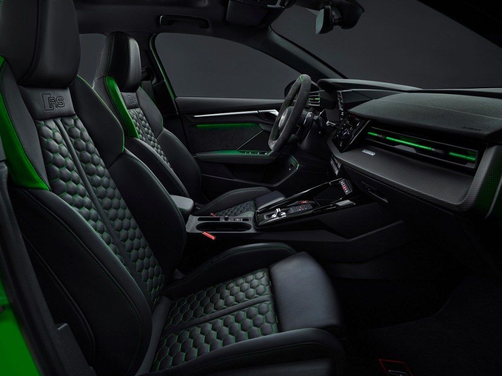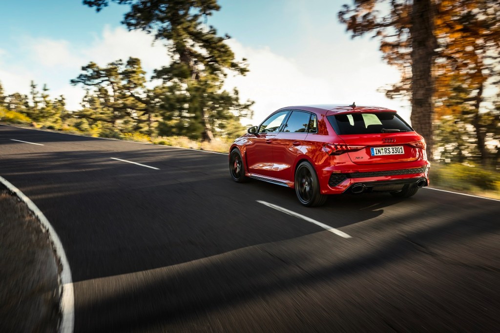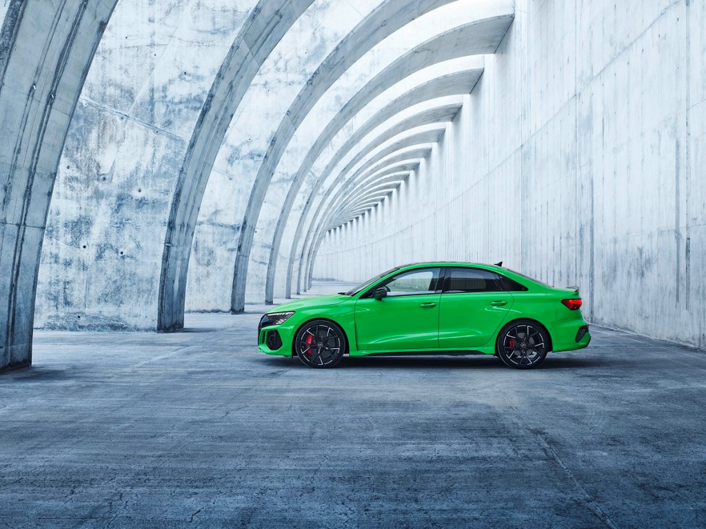 Oggi per un produttore è diventato facile estrarre vagoni di potenza e coppia da motori mediamente piccoli. RS3 è alimentata da un TFSI a 5 cilindri da 2.5 litri e, appunto, sviluppa 400 cv e soprattutto 500 Nm di coppia, che sono tanti per un’auto che pesa più o meno 1.500 kg. L’assetto è ribassato di 10 mm rispetto ad S3 e di 25 rispetto ad A3 standard, con sospensioni McPherson e pneumatici Pirelli P Zero Trofeo R.