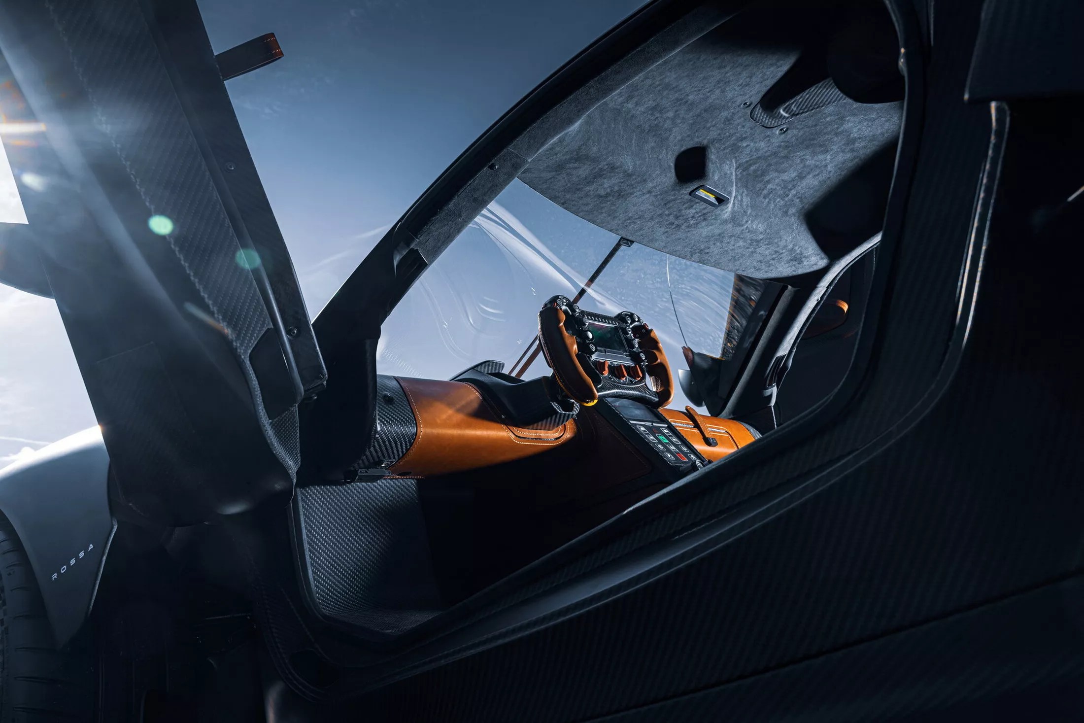 Gli interni (dei quali però non ci sono foto chiare a parte quella qui sotto) sono abbastanza corsaioli con un volante con display integrato e sedili in fibra di carbonio.