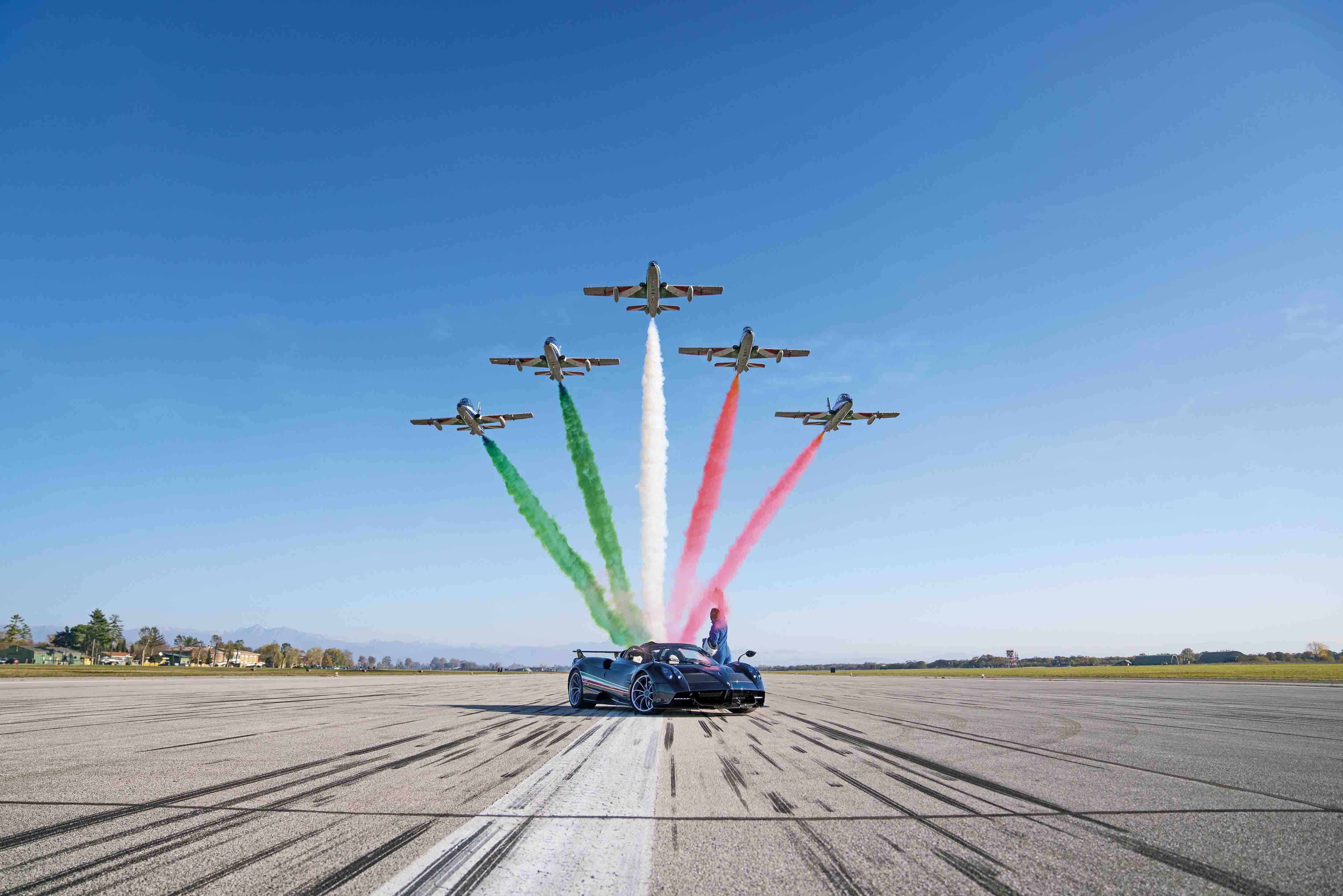 Per festeggiare il 60° anniversario delle Frecce Tricolori*, il gruppo d’addestramento acrobatico fra i più famosi del mondo, Pagani realizza un’edizione speciale della Huayra ispirata al design dei velivoli Aermacchi MB.339 A/PAN utilizzati dalle frecce.