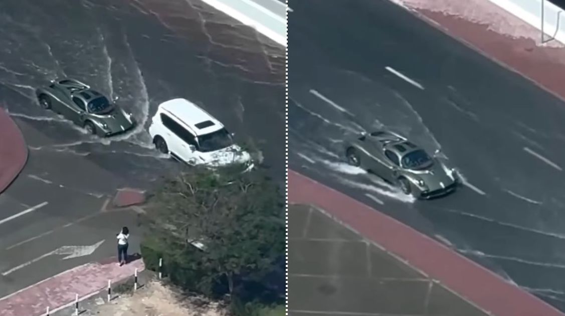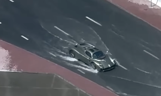 Eppure, nonostante il baricentro estremamente basso a la carrozzeria costruita in titanio e carbonio, la persona alla guida di questa Utopia è riuscita a guadare una strada totalmente allagata, uscendone indenne.