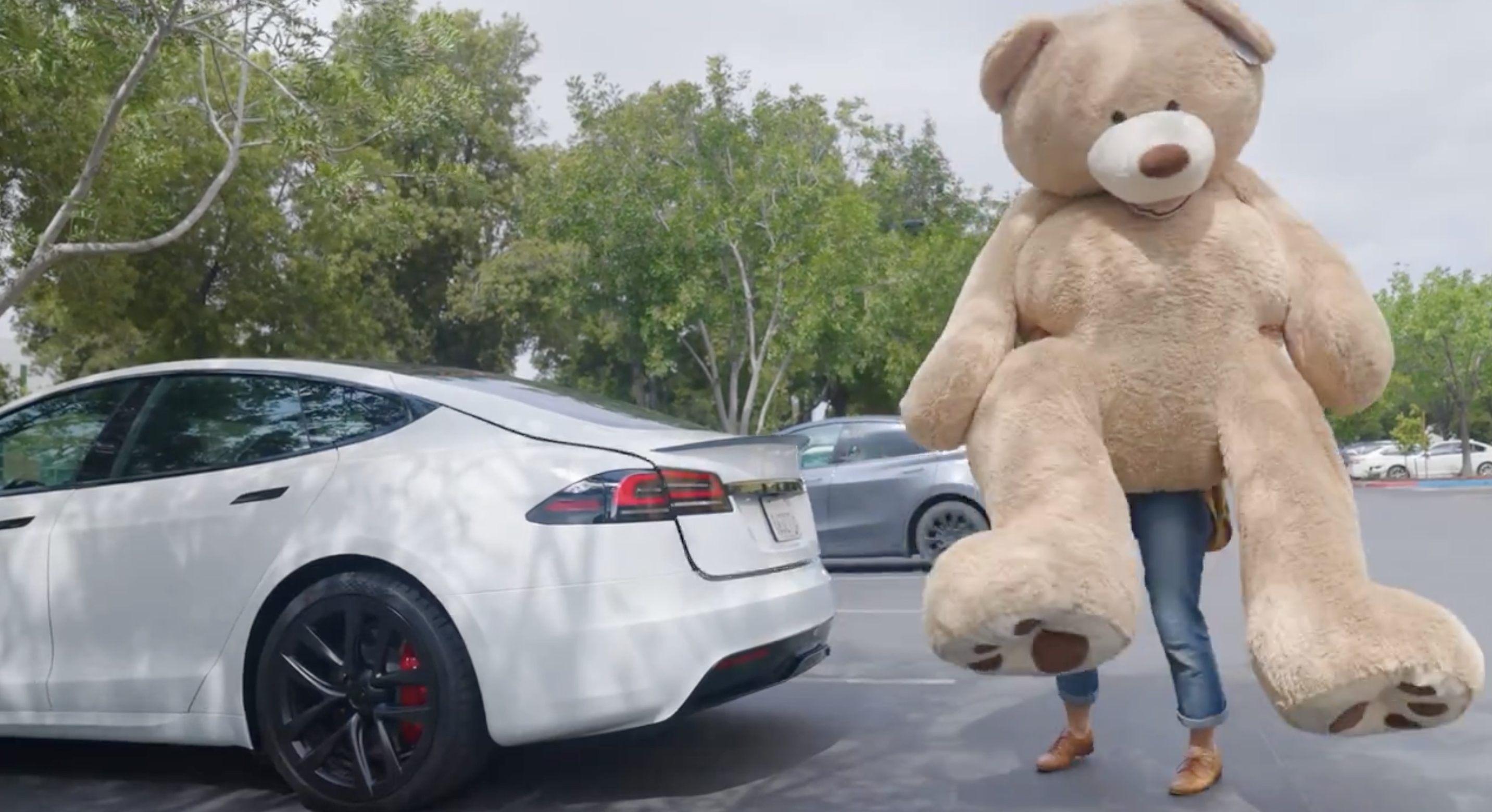 La pubblicità mostra semplicemente una ragazza che si avvicina alla propria auto con in braccio un orso di peluche gigantesco, alto più o meno due metri.