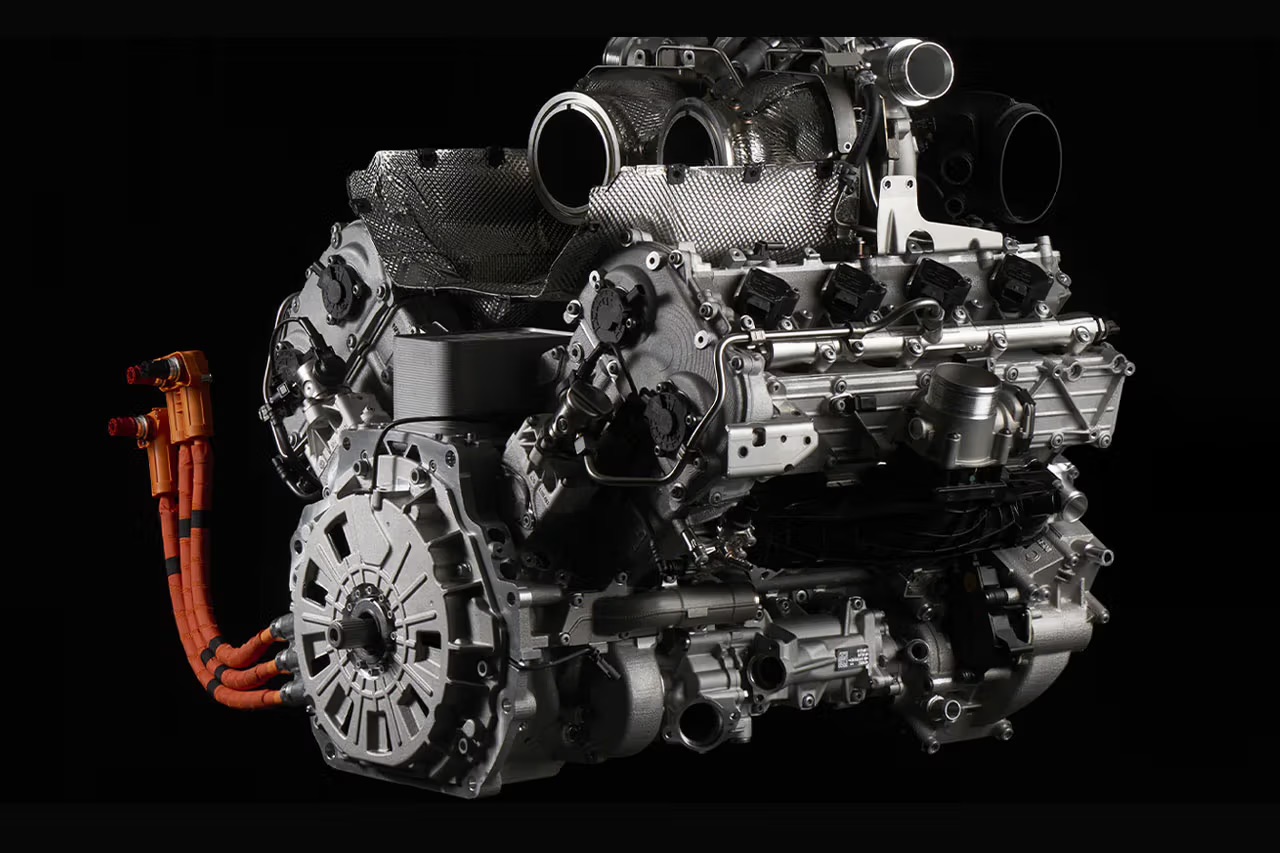 In totale, il nuovo propulsore sarà in grado di produrre 900 cavalli, circa 800 dei quali arrivano dal V8, e gli altri 100 circa dai tre motori elettrici.