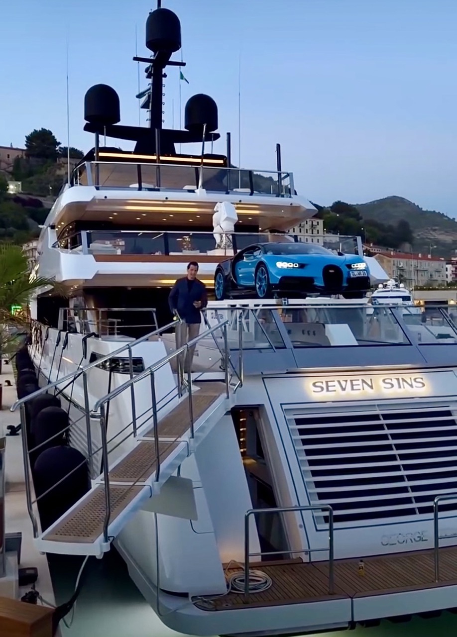 Il Sanlorenzo Seven Sins, uno yacht da 52 metri con 5 cabine, due jacuzzi e una spa, è arrivato al porto di Monte Carlo in occasione del Gran Premio di Monaco con una Bugatti Chiron letteralmente parcheggiata sul ponte.
