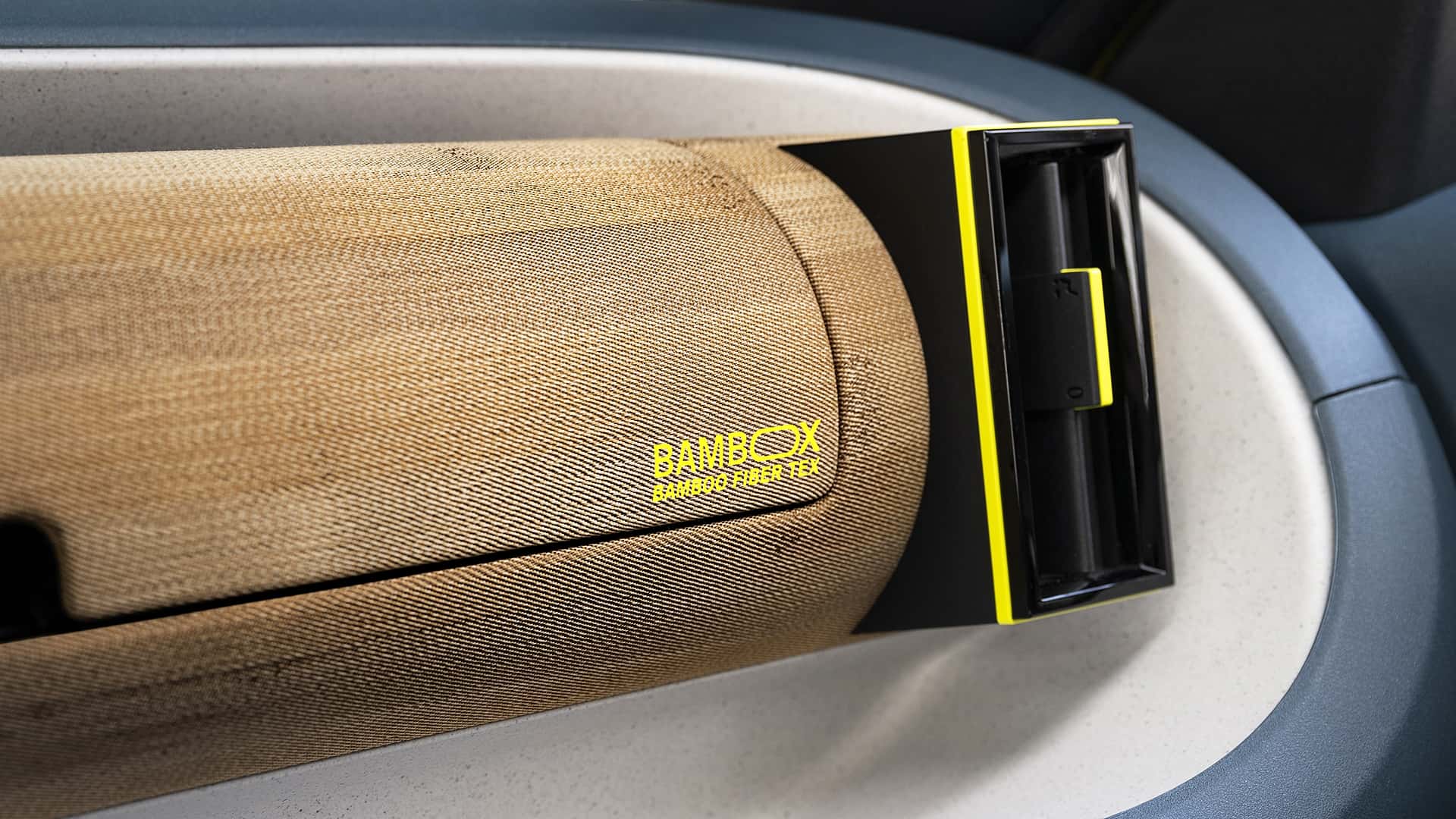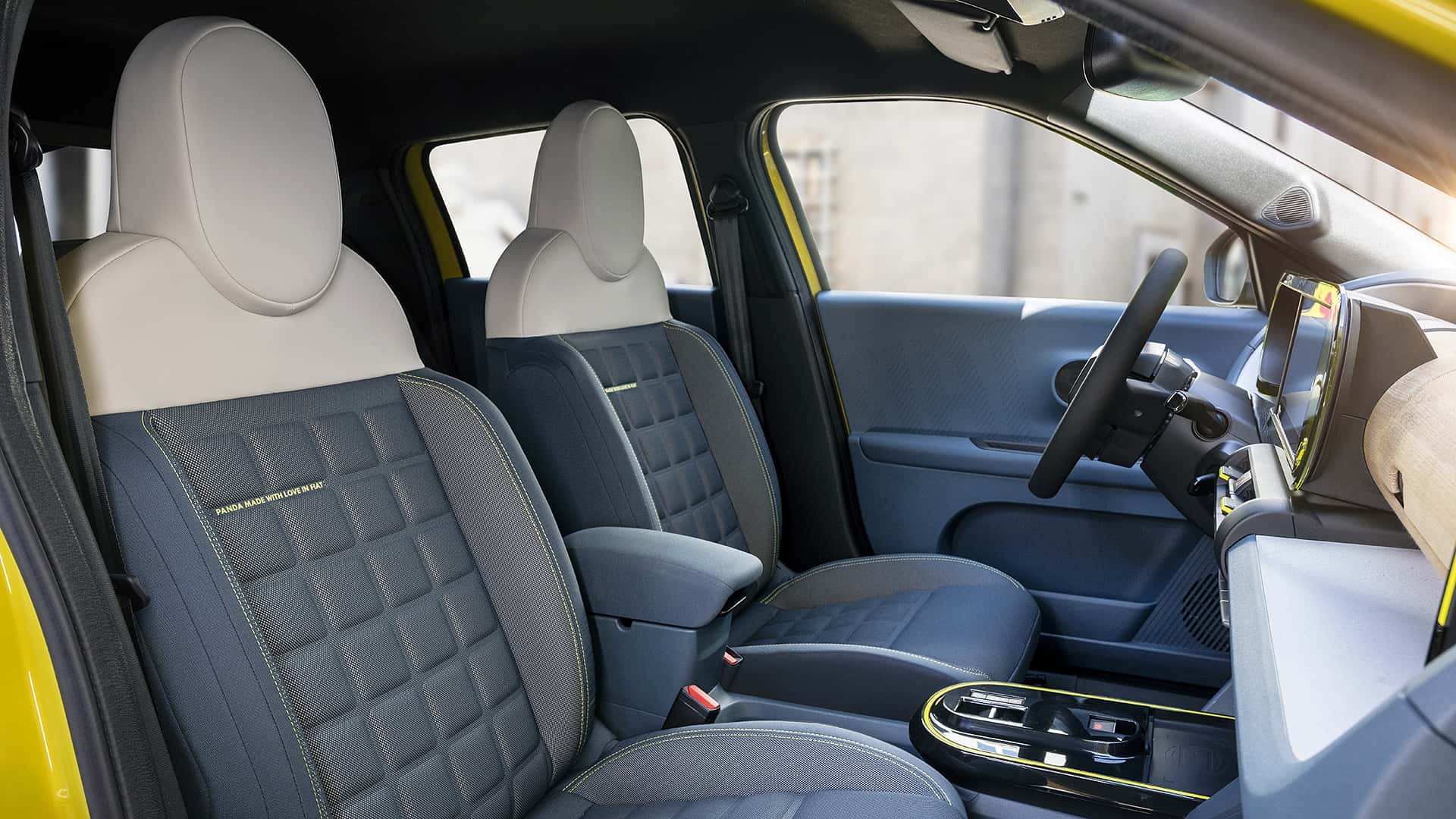 Anche gli interni si presentano con richiami stilistici alla Panda originale, a partire dalla forma quasi cilindrica della plancia lato passeggero, e ovviamente il volante ‘mono-razza’.