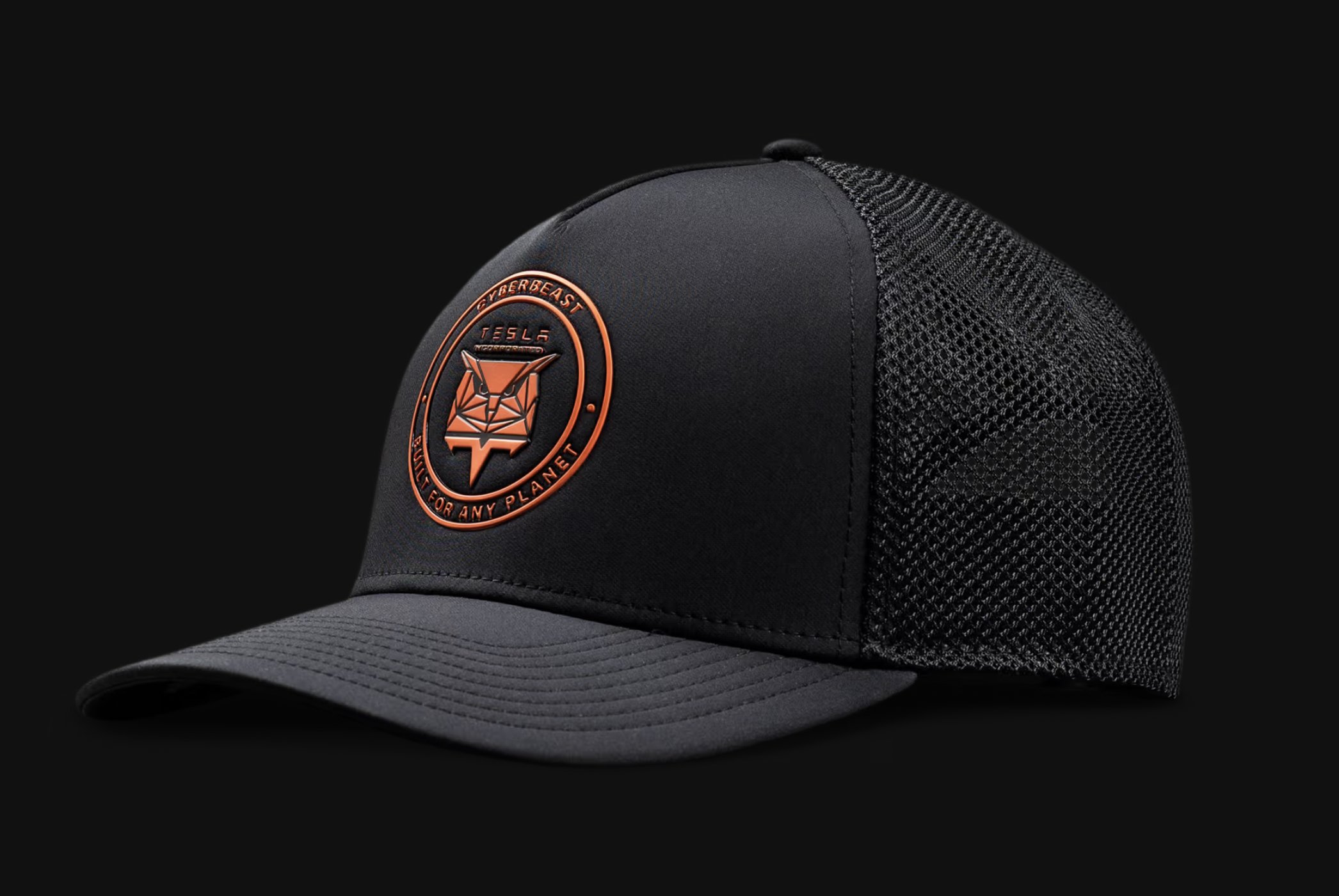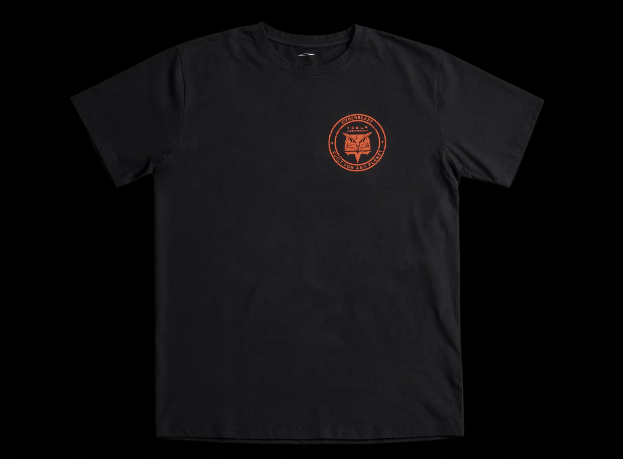 Dedicata a Cyberbeast, la versione top di gamma di Cybertruck, la nuova collezione, una maglietta, un cappello e una felpa, si presentano in nero opacizzato con dettagli arancio.