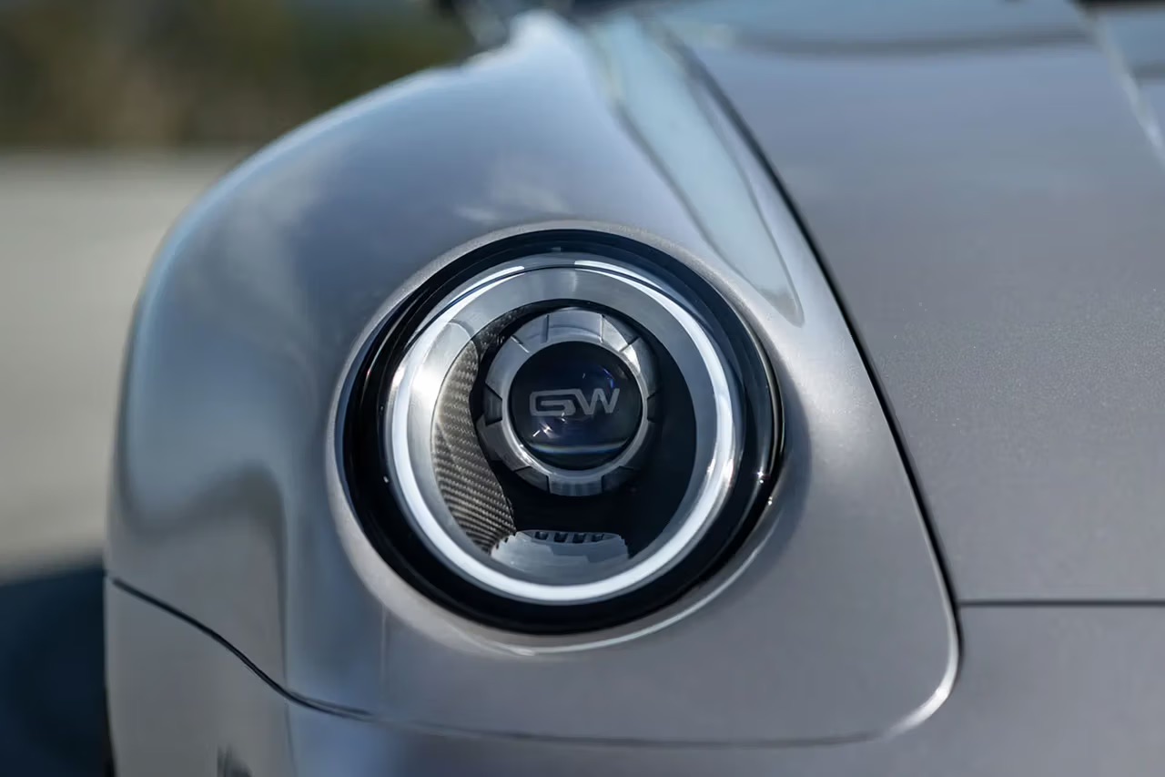 Dal punto di vista estetico, l’auto è stata fortemente modificata come da tradizione Gunther Werks, che nonostante il nome teutonico è un preparatore con sede in California.