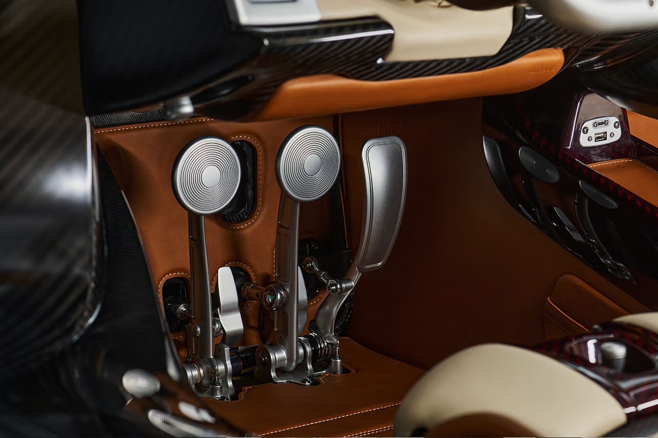 Il pomello del cambio, così come tutto il resto dell’auto e così come sempre quando si tratta di Pagani, è progettato con altissima cura dei dettagli.