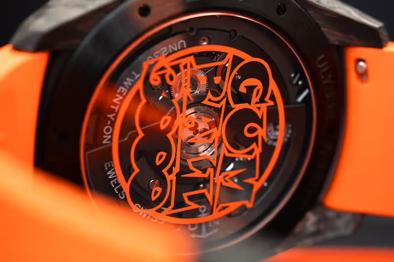 Tornando all’orologio, chiamato Freak X Gumball 3000 Edition, si presenta con cassa in titanio con dettagli in carbonio e cinturino in gomma.