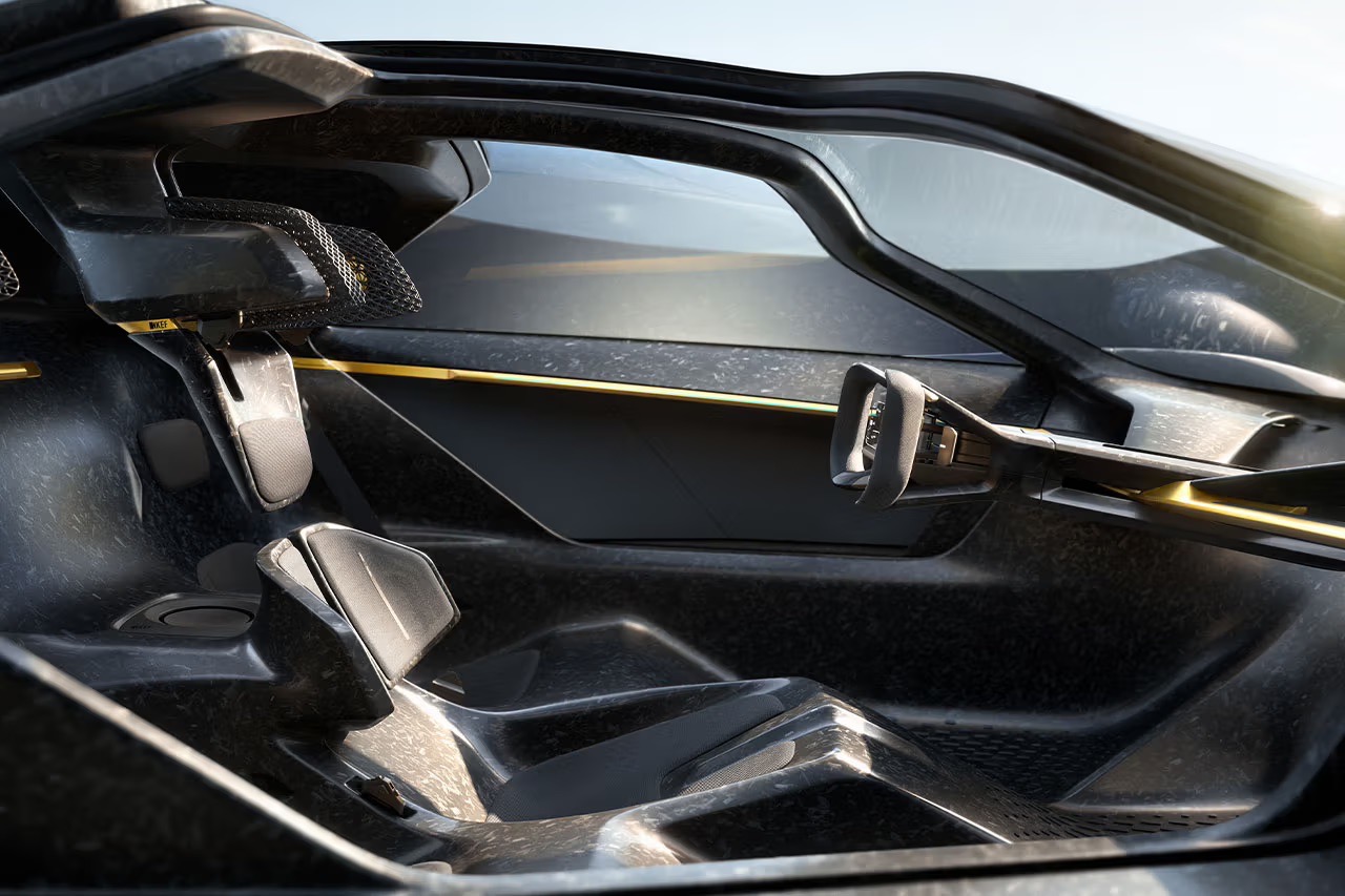 Lotus presenta Theory 1, una concept car rivoluzionaria, per Lotus, che si presenta con porte ad ala di gabbiano e configurazione a tre sedili in stile McLaren F1.