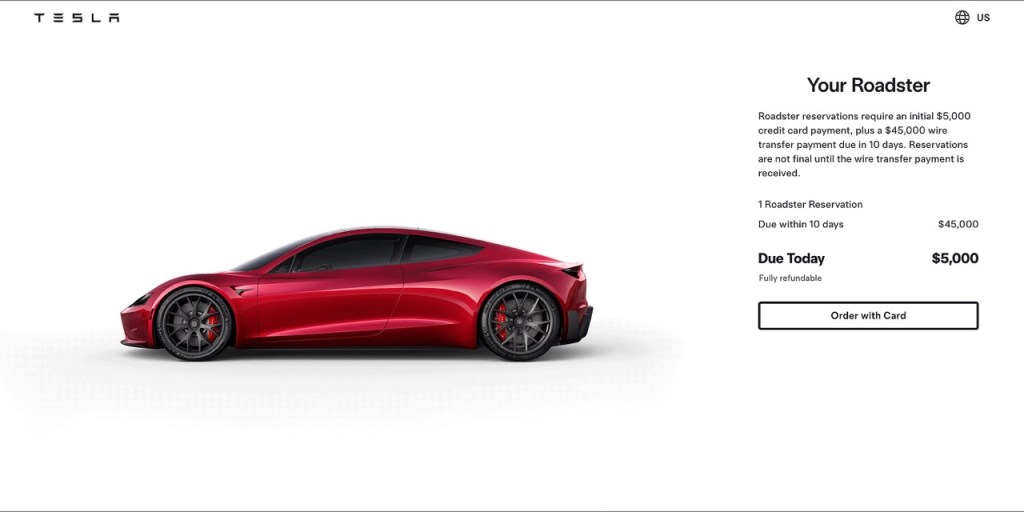 Tesla Roadster è finalmente ordinabile negli Stati Uniti, ma il deposito richiesto è assurdo.