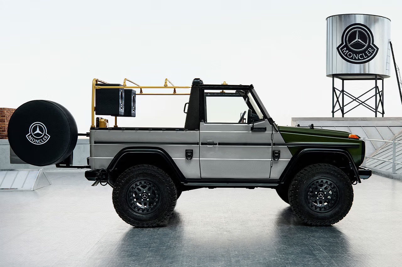 Una di queste è basata sul modello a tre porte, in versione cabrio, con il tettuccio realizzato nello stesso materiale usato per i piumini Moncler, mentre la carrozzeria è per metà verde militare e per metà grigio argento.