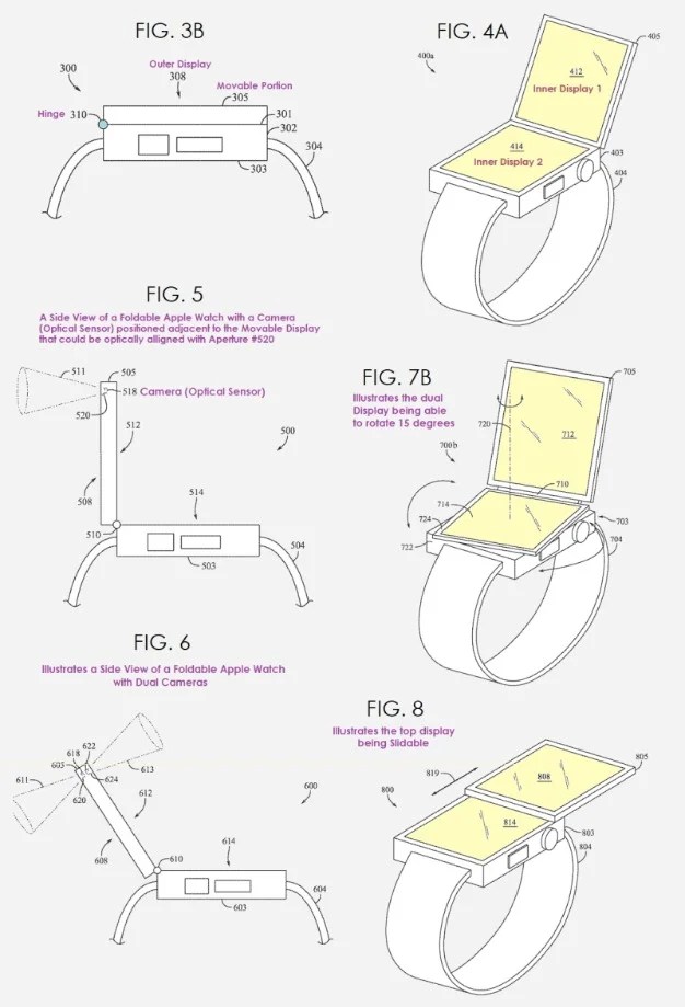 PatentlyApple, un magazine che di mestiere tiene traccia dei brevetti registrati da Apple, ne ha scovato uno davvero interessante per uno smart watch con “display pieghevole” e fotocamere.
