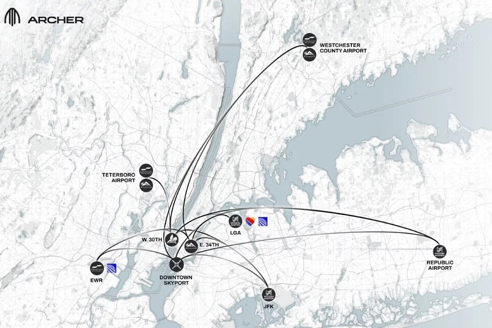 L’idea è quella di usare velivoli elettrici, per il momento Archer e United ne avrebbero a disposizione 12, e, secondo l’AD di Archer, l’idea è quella di offrire un “servizio porta a porta”, da A a B ovunque in zona New York.
