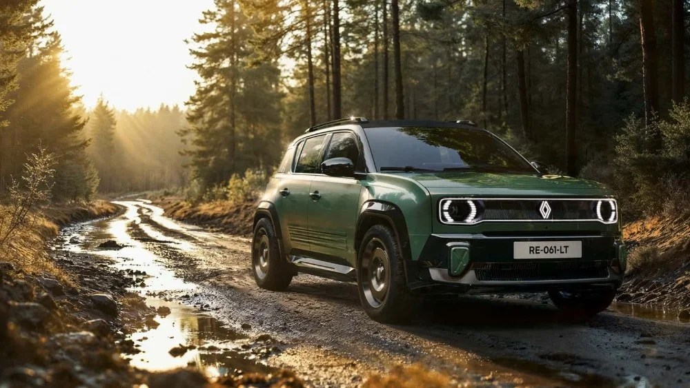 Gli pneumatici da fuoristrada completano il pacchetto, sia dal punto di vista tecnico che dal punto di vista estetico, dove si fanno notare anche i paraurti (stampati in 3D), volutamente a contrasto con il verde giada (Jade Green, come lo chiama Renault) della carrozzeria, e il tetto in tessuto.