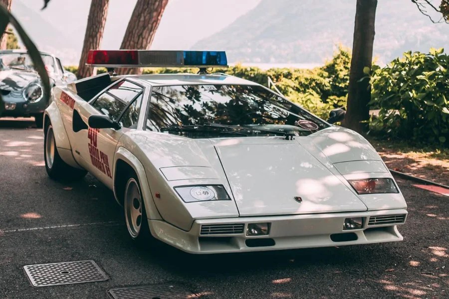 Si tratta di una Lamborghini Countach LP400 S del 1981, modificata per fare appunto da safety car o pace car.