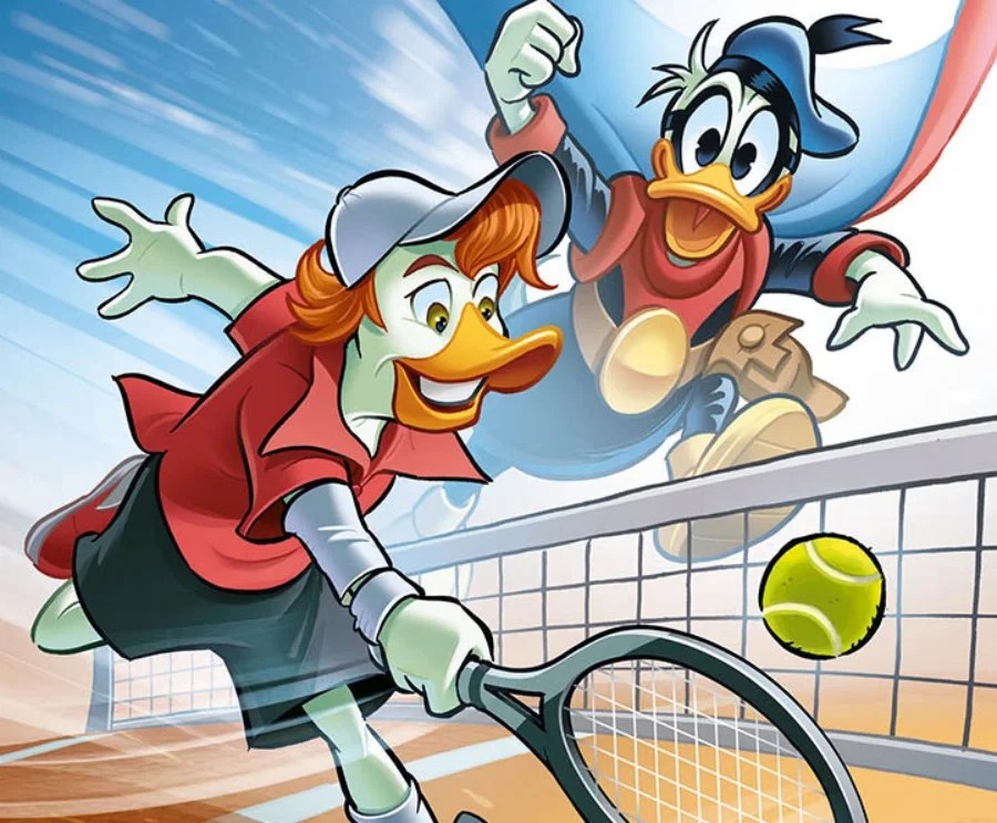 Sulle pagine di Topolino numero 3650 (con un po’ di fortuna lo trovate ancora in edicola), torna la versione ‘paperizzata’ di Jannik Sinner, chiamata Quacknik Spinner.