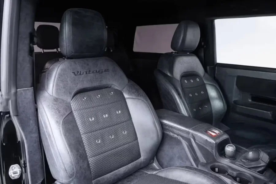 Costruito da Vintage Modern e disegnato anche con il contributo dell’attore stesso Hart, questo Bronco si presenta in ‘Triple Black’ con nero su nero su nero, e diversi tributi estetici al Bronco originale.
