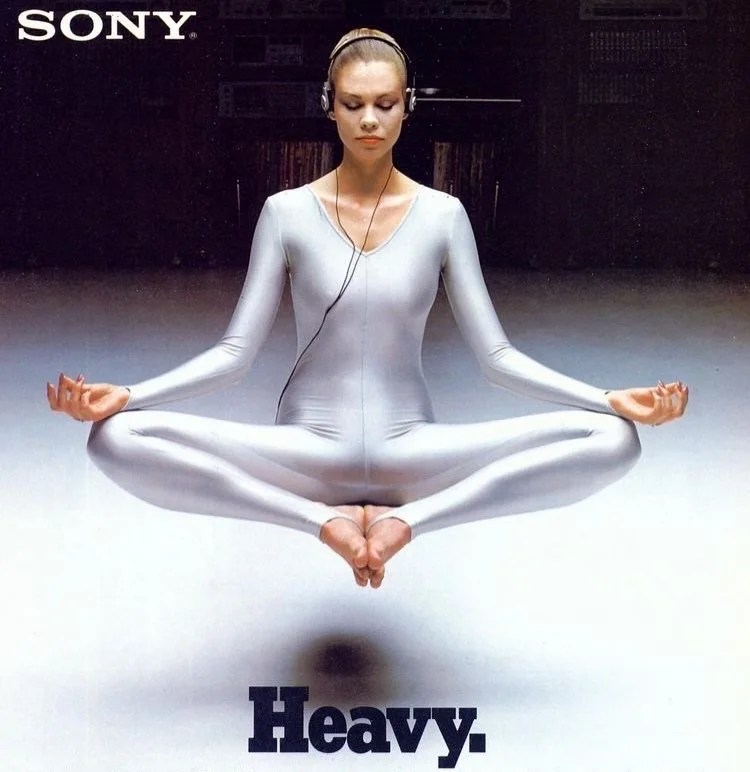 E a proposito di levitazione, l’immagine di una donna in posa yoga che ascolta cuffie Sony.