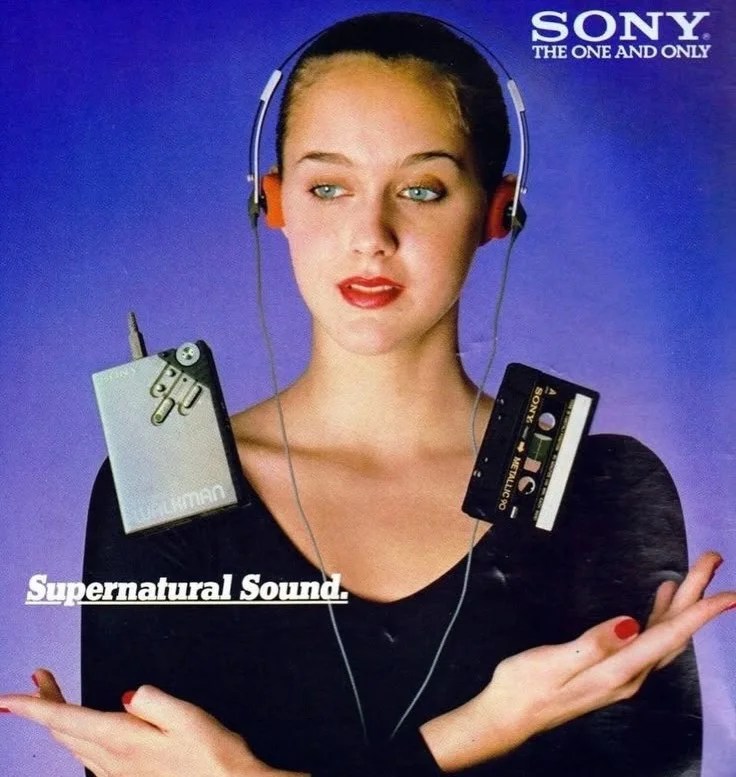 Era una delle primissime pubblicità per le MDR, le leggere e snelle cuffie che rimpiazzavano i bestioni che le precedevano.