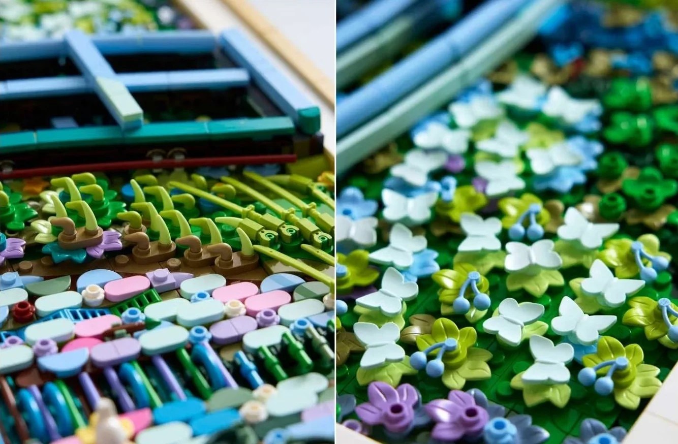 I designer LEGO hanno infatti utilizzato stratificazioni di piastrelle e elementi insoliti — come banane, farfalle e persino spade — per replicare le pennellate materiche tipiche dell’impressionismo.