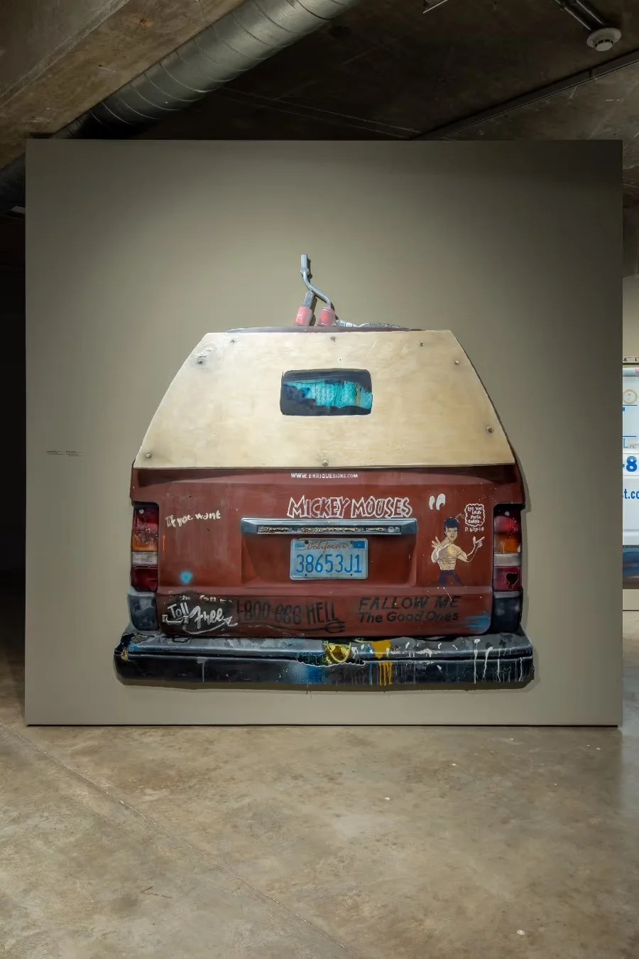 C’è un artista che si chiama Mario Ayala che ha deciso di dipingere tele a dimensione reale rappresentando i portelloni posteriori di alcuni furgoni e esporli al Contemporary Arts Museum Houston, appunto a Houston, in Texas.