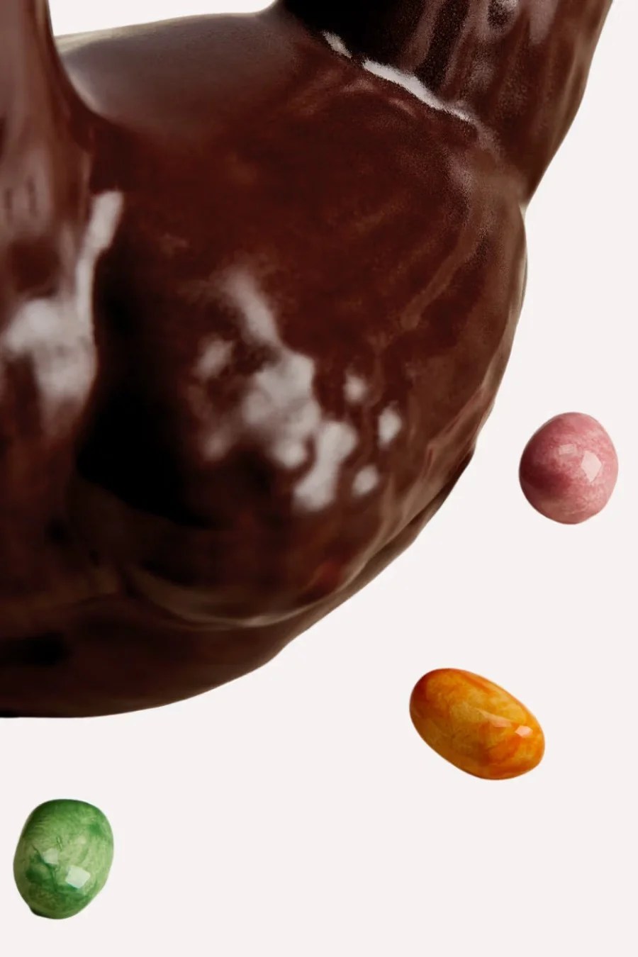Addirittura con piccole perline in cioccolato che, presumiamo, siano le uova della gallina.