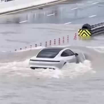 Fa abbastanza impressione. … More Porsche Taycan filmata mentre ‘nuota’ durante l’alluvione a Dubai